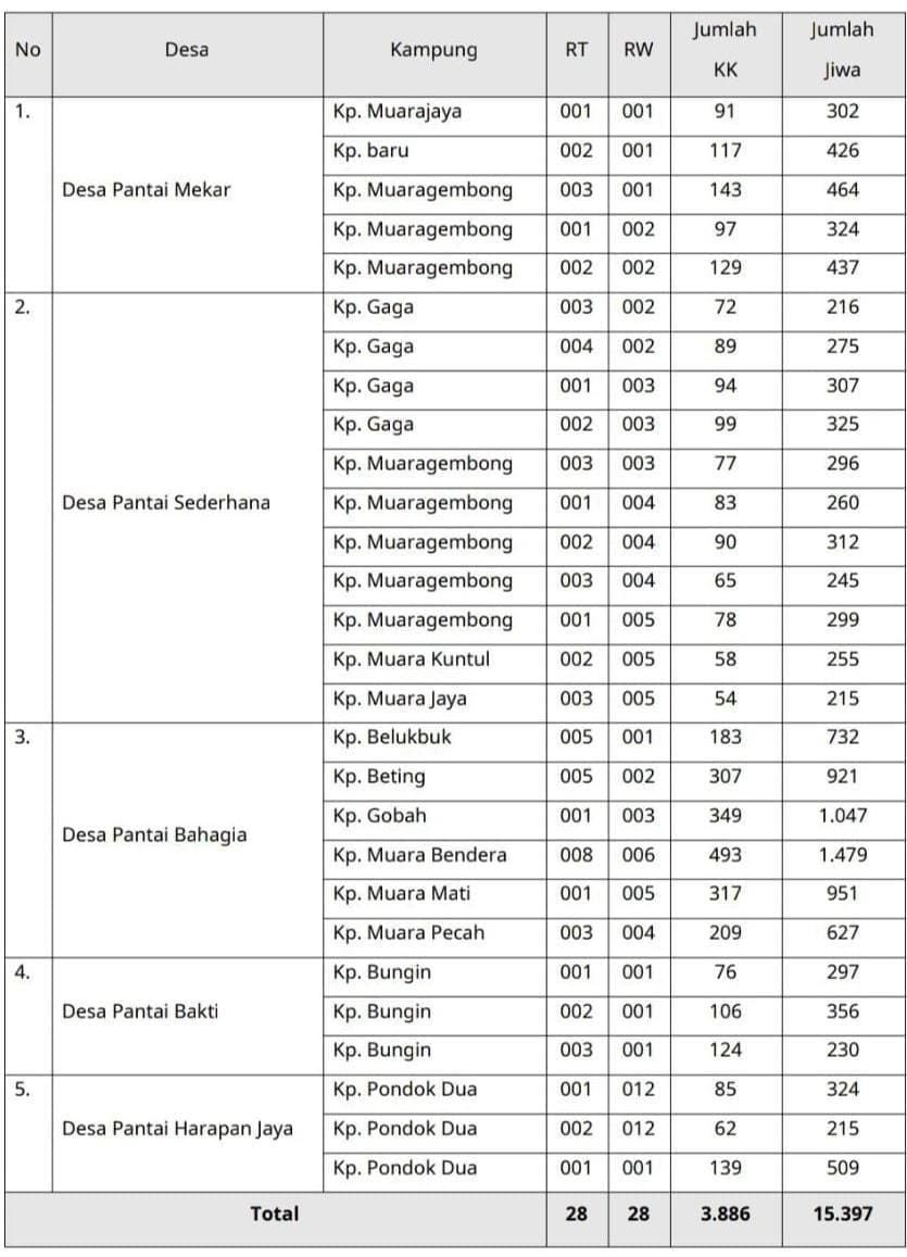 Data warga terdampak banjir rob di Kecamatan Muaragembong 2025. FOTO: DOKUMEN KEC. MUARAGEMBONG