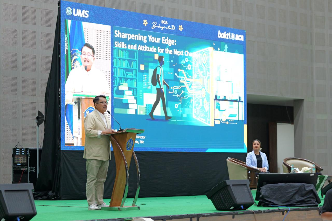 Pertajam Sikap dan Mentalitas sebelum Hadapi Dunia Kerja – Melalui kuliah umum bertema ”Sharpening Your Edge: Skills and Attitude for the Next Chapter”, Direktur BCA Antonius Widodo Mulyono mengajak peserta BBI di UMS untuk memperkokoh keterampilan dan sikap di tengah dinamika yang bergerak cepat. Kemampuan tersebut diperlukan sebagai bekal mahasiswa dalam menghadapi dunia kerja. Gelaran BBI di UMS merupakan edisi ke-9 sekaligus menjadi penutup di 2025.Lebih lanjut, Widodo juga menggarisbawahi pentingnya mahasiswa memperkokoh sikap dan mentalitas sebelum menghadapi dunia kerja. Menurutnya, lingkungan kerja menuntut ketangguhan di tengah dinamika yang bergerak lebih cepat dibanding saat menempuh pendidikan di universitas. Di samping kemampuan beradaptasi, ia mengatakan mahasiswa harus menguasai diri dalam mengelola emosi. Pasalnya, kematangan emosional menjadi kunci bagi para lulusan muda saat mulai berkarier. “Fresh graduate biasanya akan kaget dengan dinamika dunia kerja yang bergerak cepat. Meskipun kemampuan akademik penting, jangan lupakan juga ketangguhan mental dan kedewasaan emosional. Saat kita mampu mengelola emosi dengan baik, tantangan seberat apapun dapat kita lalui dengan baik,” imbuh Widodo.