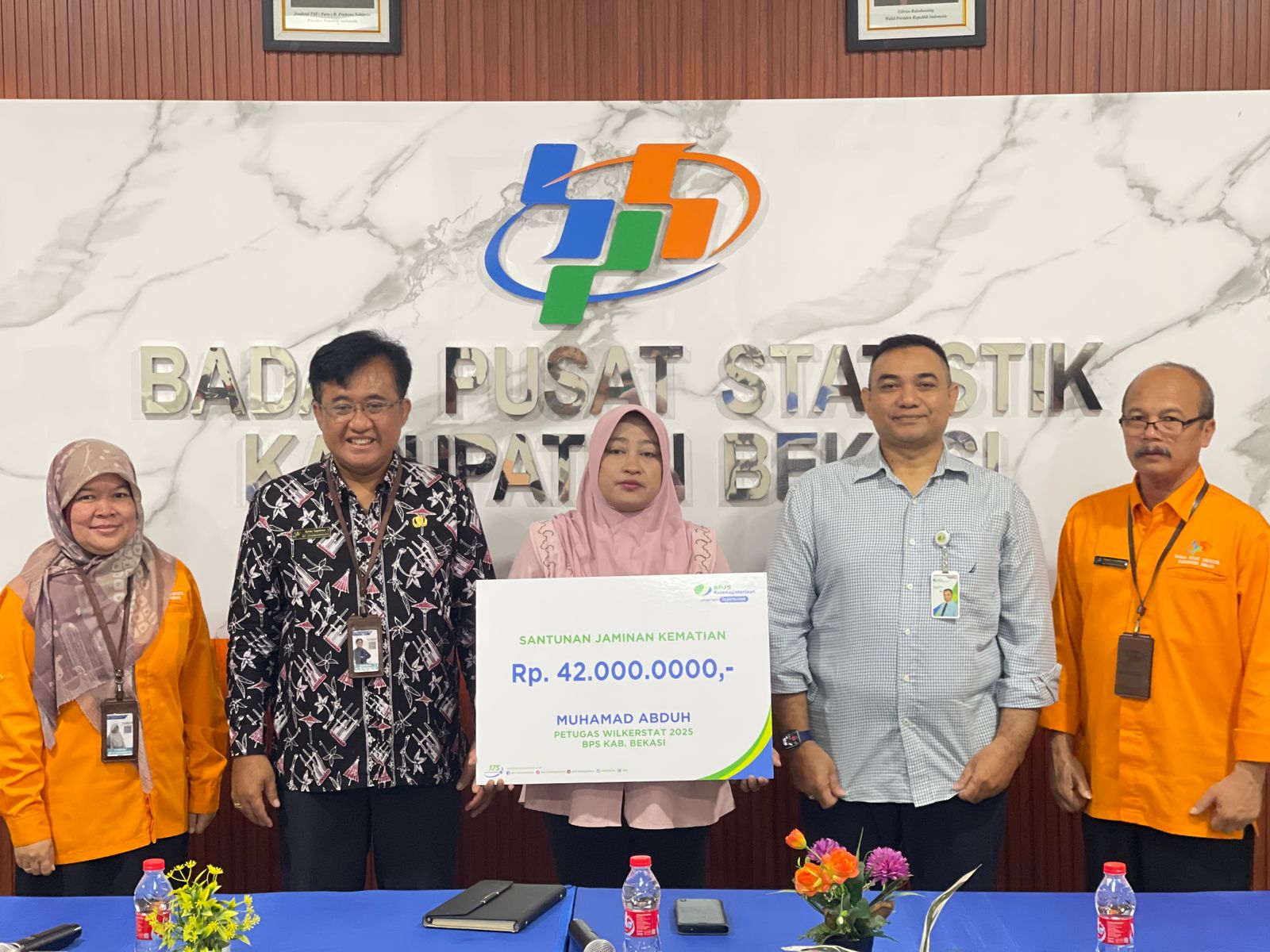 Penyerahan santunan dilaksanakan di Kantor BPS Kabupaten Bekasi dan dihadiri oleh Indra Gunawan, Kepala Bidang Kepesertaan Program Khusus, bersama Krido Saptono, Kepala BPS Kabupaten Bekasi, serta pihak terkait lainnya. Santunan tersebut diterima oleh Siti Mariam (39), istri almarhum Muhamad Abduh yang semasa hidupnya tercatat sebagai petugas Wilkerstat di Kantor BPS Kabupaten Bekasi.