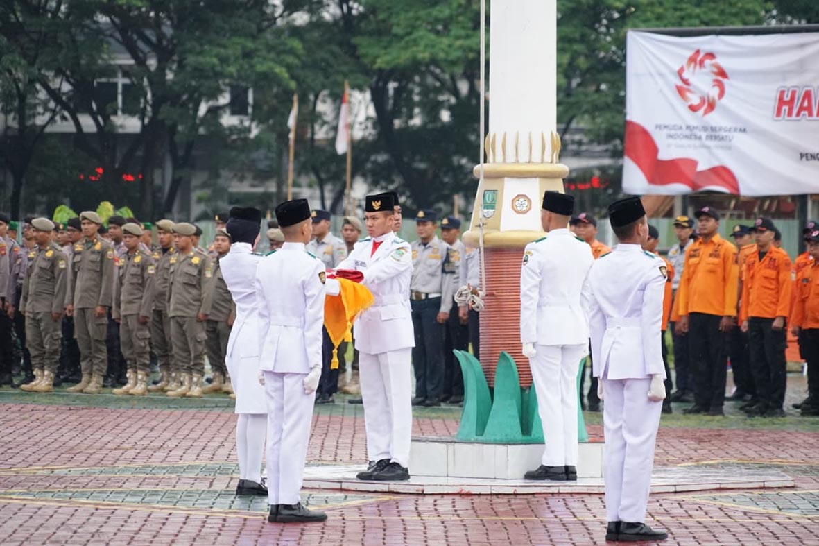 Di tengah rintik hujan, Bupati Bekasi, Ade Kuswara Kunang, memimpin langsung jalannya peringatan nasional yang mengangkat tema “Pemuda Pemudi Bergerak, Indonesia Bersatu.”
