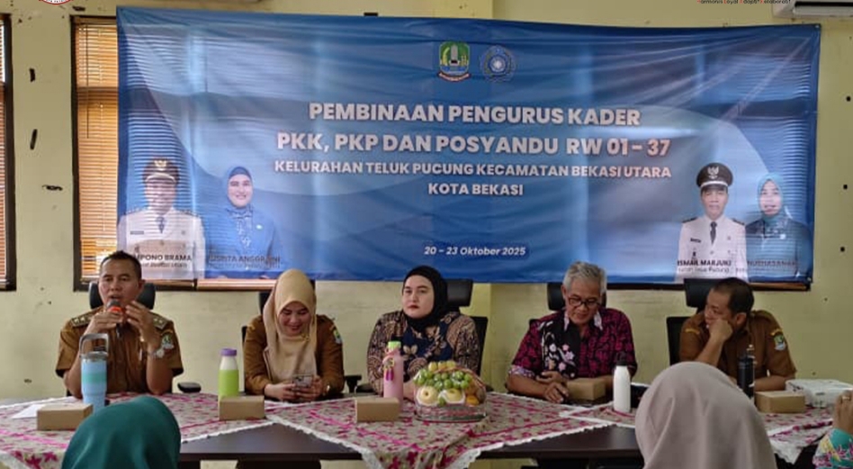 RADARBEKASI.ID, BEKASI – Pemerintah Kelurahan Teluk Pucung, Kecamatan Bekasi Utara, menggelar kegiatan pembinaan bagi pengurus kader PKK, PKP, dan Posyandu selama tiga hari, sejak Senin (20/10) hingga Rabu (23/10). Kegiatan ini digelar di Aula Kantor Kelurahan Teluk Pucung.
