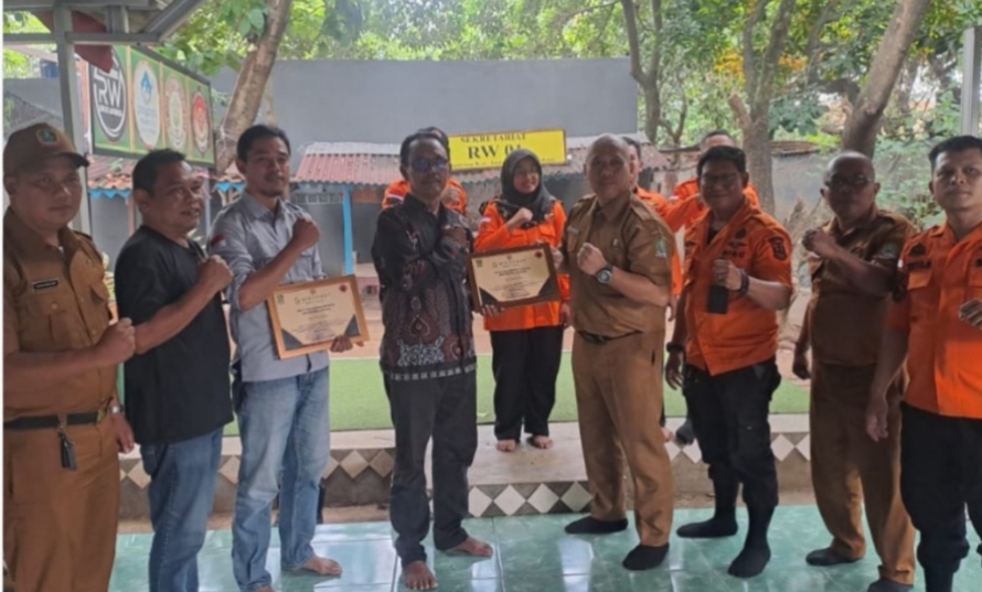 Pelatihan ditutup dengan penyerahan sertifikat kepada perwakilan RW 01 dan RW 02 Jatirasa sebagai bentuk pengakuan atas kesiapan dan partisipasi aktif masyarakat dalam upaya mitigasi bencana.