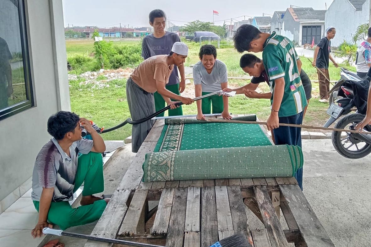 Dalam kegiatan yang didampingi guru tersebut, para santri menyapu, mengepel, dan mencuci karpet agar musala maupun masjid lebih nyaman digunakan oleh masyarakat untuk beribadah. Selain itu, para santri juga membersihkan toilet.