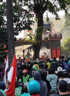 Pantauan Radarbekasi.id di lapangan, massa aksi yang tergabung dari gabungan pengemudi ojek online (ojol) dan berbagai elemen masyarakat terus berusaha merangsek masuk ke dalam Markas Brimob menuntut keadilan.