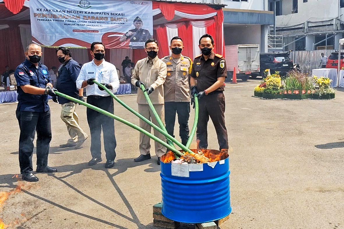 Kepala Kejari Kabupaten Bekasi, Eddy Sumarman, merinci barang bukti yang dimusnahkan, antara lain narkotika jenis sabu seberat 1.529,5194 gram dari 44 perkara, ganja seberat 5.919,8371 gram dari 32 perkara, dan pil ekstasi sebanyak 5.809 butir dari 3 perkara. Selain itu, terdapat 88 unit handphone dari 59 perkara dan 29 bilah senjata tajam dari 23 perkara.
