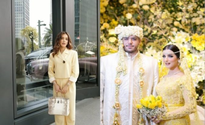 Tasya tampil menawan dengan outfit serba kuning, mulai dari blazer-top hingga palazzo yang senada. Sebagai pelengkap, ia menjinjing tas Hermes berbahan kulit ular berwarna silver-gold, yang sukses menjadi statement gaya di tengah momen penuh emosi tersebut.