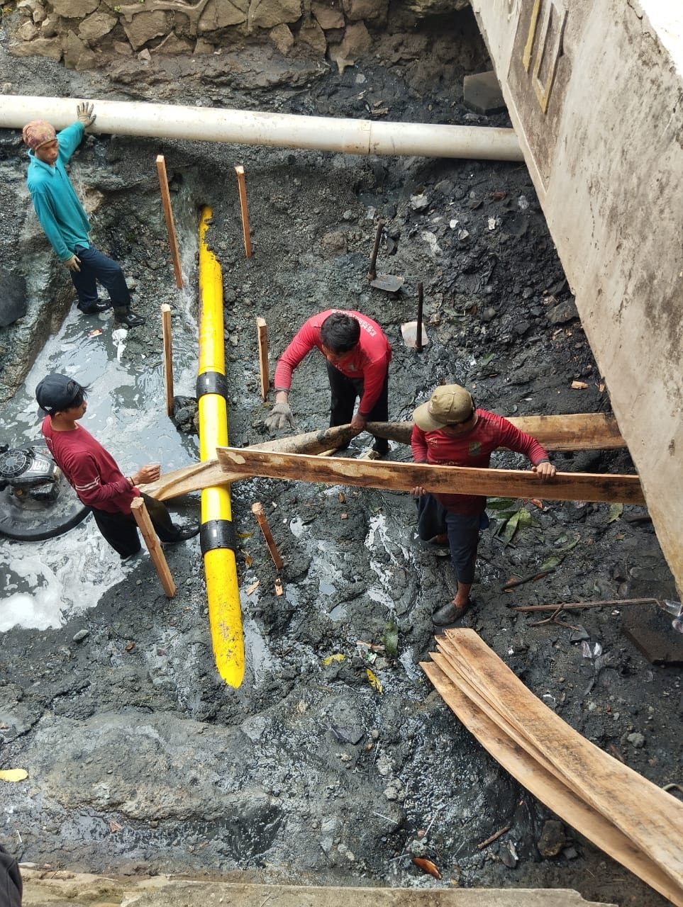 Farhan menambahkan, kendala utama yang dihadapi tim adalah aliran air di kali tempat pipa tertanam. Saat dilakukan pengerukan, air terus masuk ke area kerja.