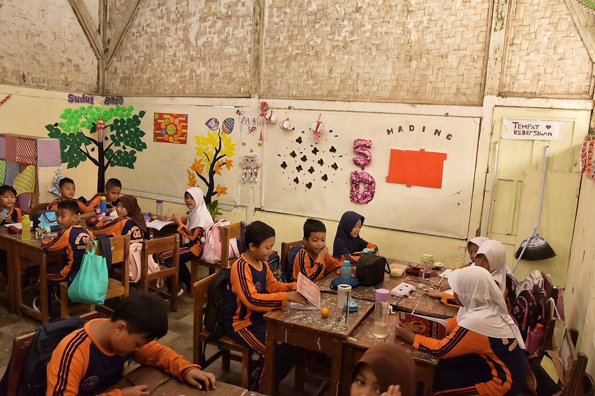 Dari lima ruang yang ada, dua di antaranya masih digunakan untuk kegiatan belajar mengajar kelas Vc dan Vd. Satu ruang dijadikan tempat ibadah, sementara dua ruang lainnya tidak difungsikan.