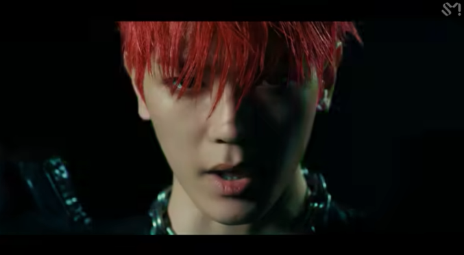 Video musik ‘501’ menghadirkan konsep visual yang kuat dengan estetika sinematik yang sarat simbolisme. Taeyong tampil mencuri perhatian dengan rambut merah menyala yang kontras dengan latar hijau neon dan permainan bayangan gelap, menciptakan atmosfer dramatis sekaligus misterius.