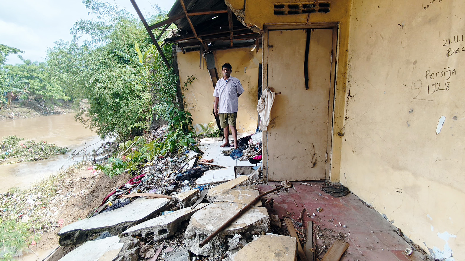 “Dulu itu jarak dari rumah ke bantaran Kali Bekasi ini sekitar 13 meter. Kalinya sendiri lebarnya 55 meter. Jadi rumah ini sebenarnya jauh sekali dari air. Dulu tanahnya berbukit-bukit, tapi habis karena dikikis terus oleh Kali Bekasi,” terang Murdani.